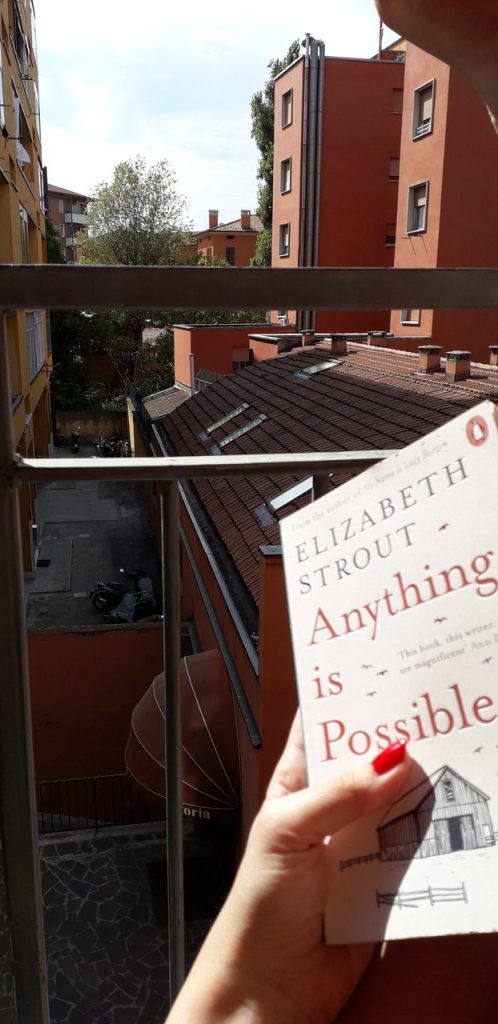 Äskettäisellä lomamatkalla Bolognassa päätin pitkästä aikaa tarttua romaaniin, jonka olin saanut lahjaksi entiseltä opinnäytetyön ohjaajaltani jo tovi sitten. Elizabeth Stroutin “Anything is Possible” (suom. “Kaikki on mahdollista“) pitikin hyvin seuraa hehkuvan kuumalla hotellin parvekkeella ja lentokoneen kiitäessä takaisin kohti Eindhovenia.