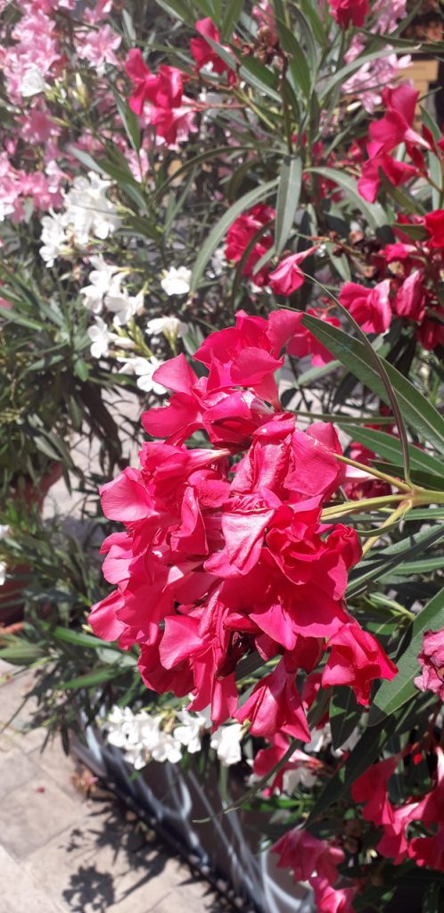 Aamupalan nautimme ulkoterassilla, jossa näkyi meidän lisäksemme vain muutamia muita ihmisiä ja sitäkin röyhkeämpiä puluja hyppelemässä pöydillä murujen perässä. Liikkeissä vieraillessa paikallisten tiukka suhtautuminen maskipakkoon kävi nopeasti ilmi, mutta asenne ei suinkaan ulottunut oman kulahtaneen pittoreskin hotellimme hygieenisyyteen. Aamupalasalissa oli asiakkaille tarjolla astioita ja tarjottimia kerrassaan siivottomassa kunnossa, ja useimpien tarjoilulautasten kohdalla saattoi vain unelmoida ottimista. Asiakkailla ja henkilökunnalla ei pääsääntöisesti ollut maskeja, mutta me naamioimme kasvomme tunnollisesti ja poistimme maskit vain syömisen ajaksi.