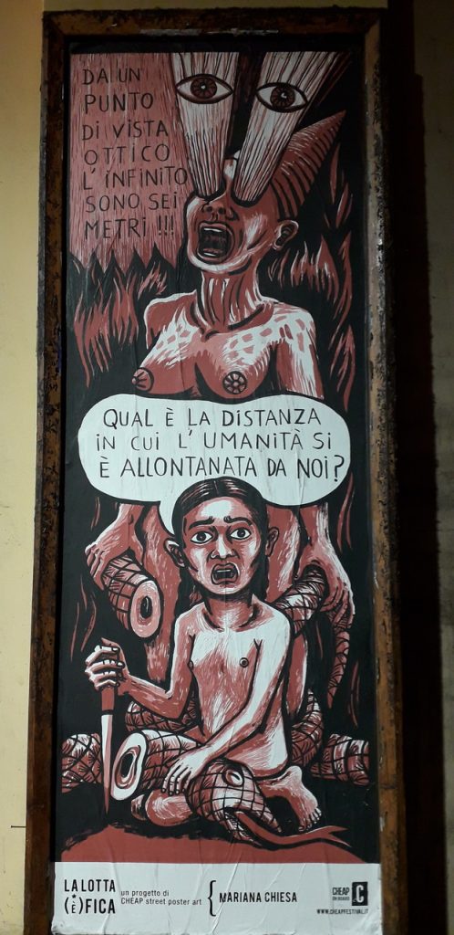 Toinen Bolognan lempinimistä on “La rossa“, punainen, joka ei viittaa niinkään sen punaisina hehkuviin rakennuksiin kuin työläisliikkeen ja kommunismin vahvaan jalansijaan kaupungissa. Keskikaupungilla talon seinää saattaa koristaa useampimetrinen muraali, joka esittää duunareita haalareissaan ja muissa vermeissään, ylväinä kuin kuninkaalliset. Myös protestiliikkeillä ja aktivismilla on syvät juuret, jotka näkyvät konkreettisesti esimerkiksi kantaaottavassa katutaiteessa ja monenmoisissa kommentaareissa, joita paikalliset ovat raapustaneet talojen seiniin. Yksi toteaa filosofisesti: “Samalla kun TV katsoo minua, koko muu maailma tukehtuu ja minä hengitän”.
