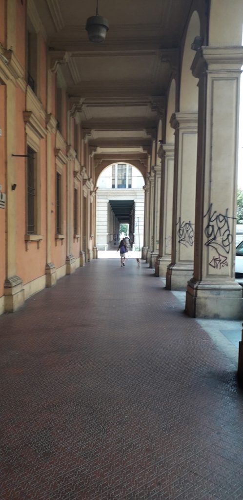 Oppineisuutensa ohella persoonallinen Bologna tunnetaan pitkistä katetuista kaarikäytävistään. Kaupungin asukasmäärä kasvoi nopeasti keskiajalla, jolloin taloihin ryhdyttiin elintilan laajentamiseksi rakentamaan alkujaan puisia lisäkkeitä, joita myöhemmin tuli pakolliseksi tukea muuratuilla pylväshalleilla. Nämä kiviset käytävät suojasivat porottavalta auringolta ja satunnaiselta sateelta, ja mahdollistivat esimerkiksi käsityöläisten ulkona työskentelyn. Aurinkoa varova huomaa kiitollisena voivansa taittaa kivikaarien suojassa melkoisen matkan, koska niitä risteilee Bolognassa yli 40 kilometriä, eniten koko maailmassa.